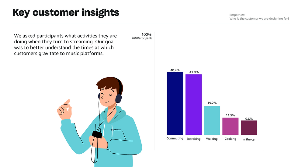 Once we got the big picture overview we wanted to delve deeper and gain some qualitative insights. We conducted 16 semi structured user interviews to understand the music preferences